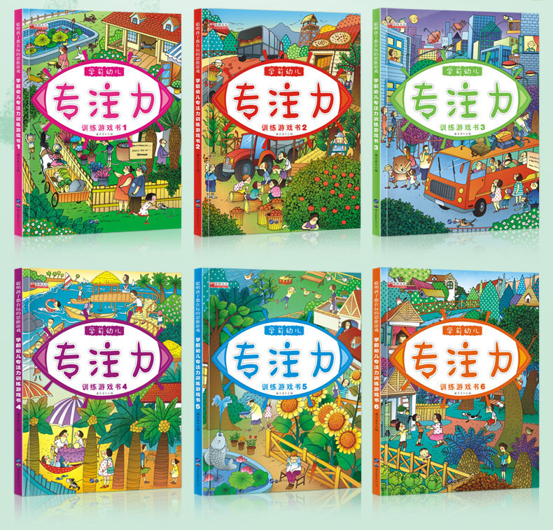 A full set of 6 concentration training game books for young children to improve attention and cultivate children's puzzle books 3-6 years old