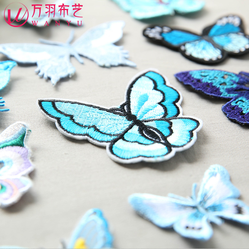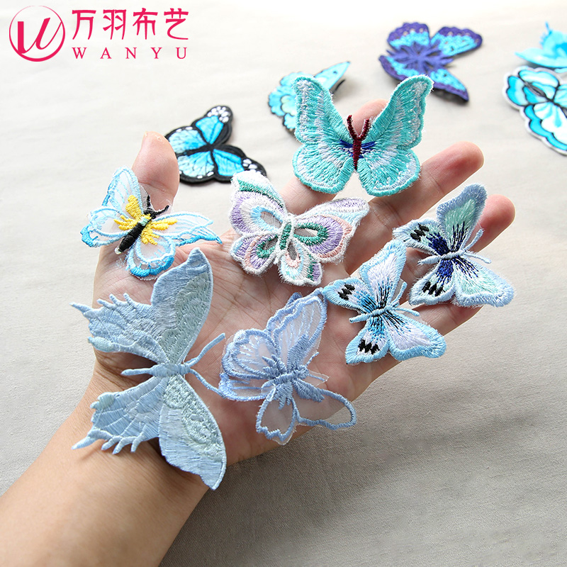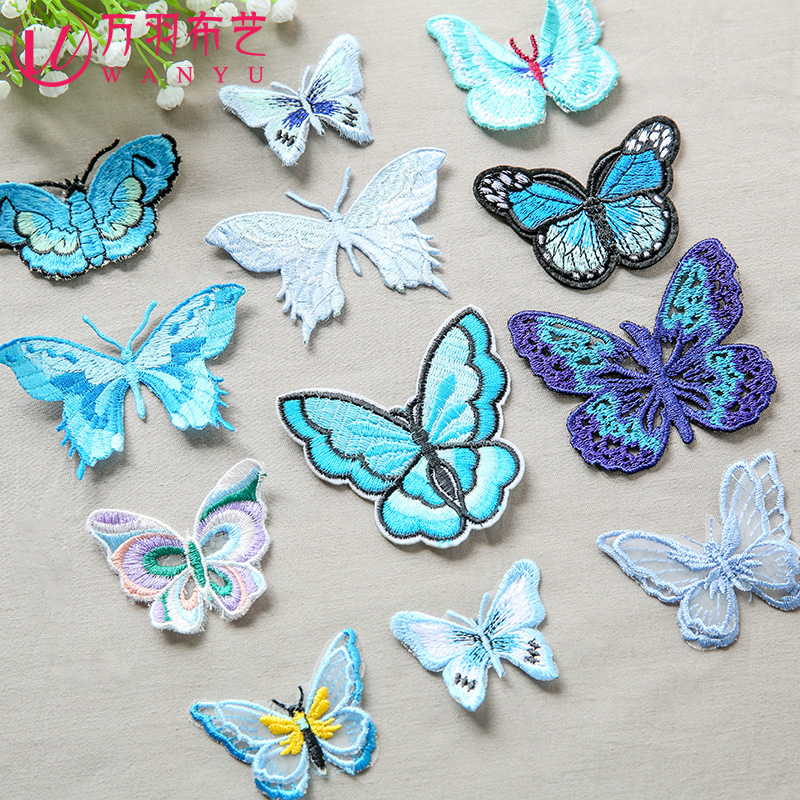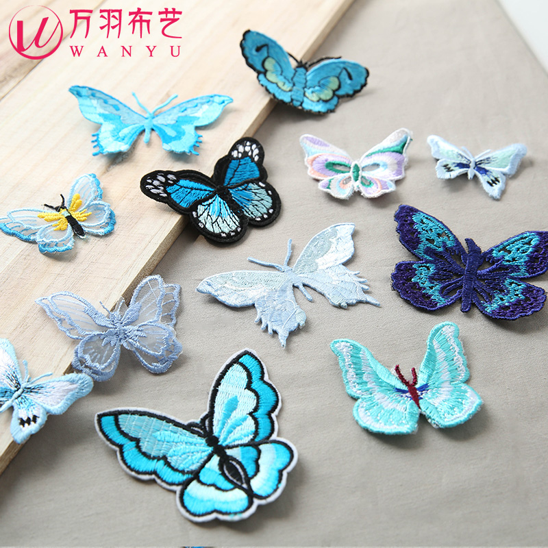 Small blue empty butterfly cloth with broken holes sticking to the shape of flowers DIY clothing accessories pattern clothes embroidered embroideries to break the holes