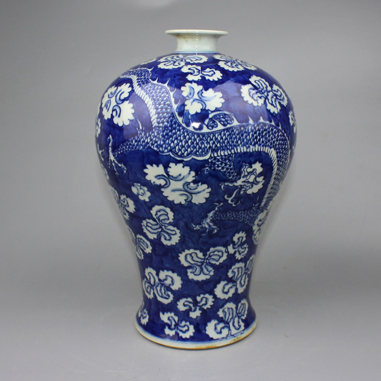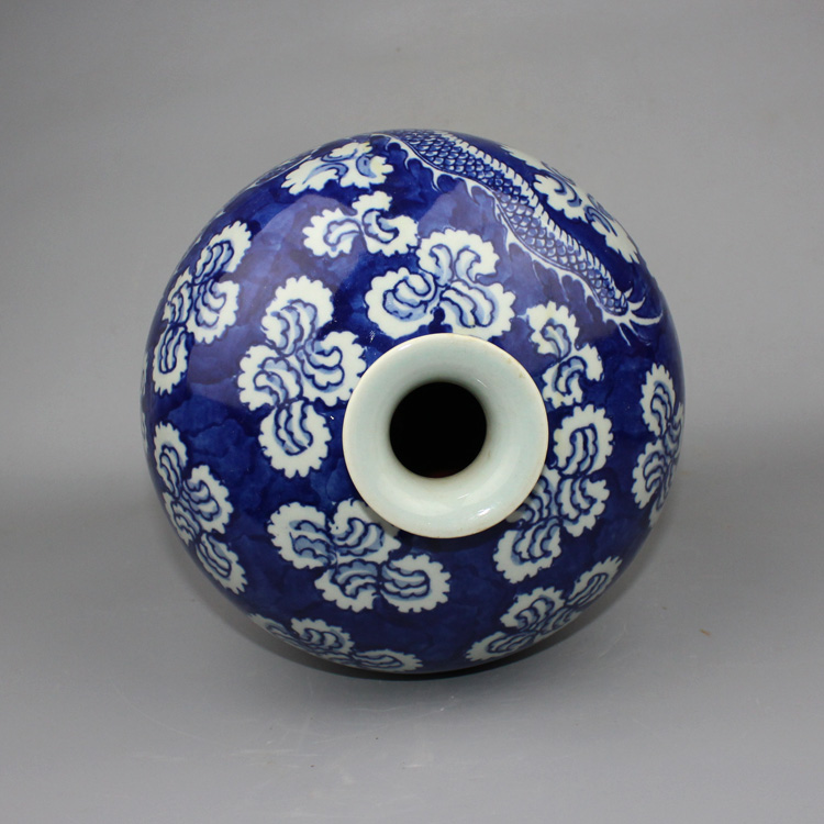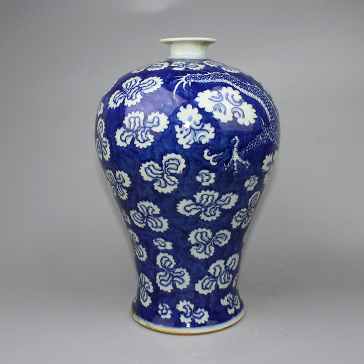 Qingqinghua painting dragon plum bottle double circle floral ornament antique porcelain ornament collection ancient porcelain Jingdezhen