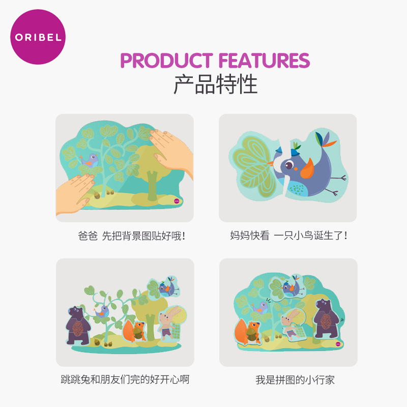 Oribel Wall Sticker Toy One Year And Half Baby Puzzle Toy Home Wall-mounted Wood Jump Rabbit and Good Friends