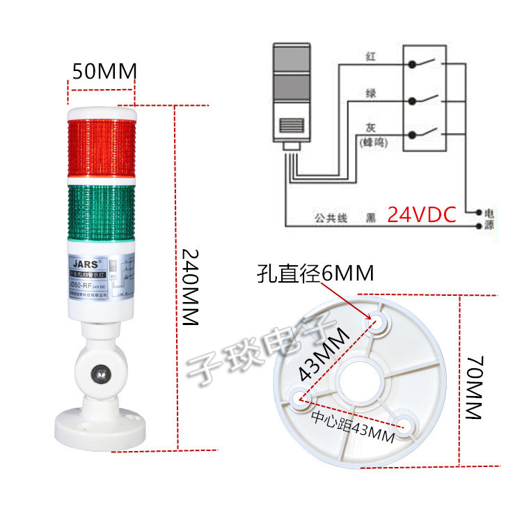 JD50 series LED two-color warning light 2-color foldable warning light signal light multi-layer tower light machine 24V always on