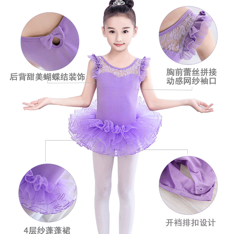 Children's dance clothes girls training clothes summer cotton suspender ballet skirt behind the bow lace jumpsuit