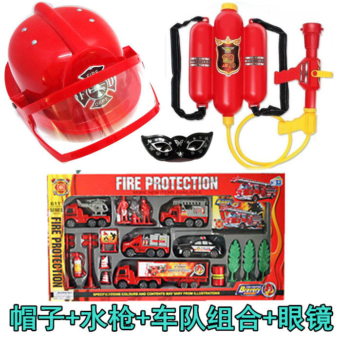 Fire hat, send glasses, push-pull backpack, water gun, send glasses, inflatable fire extinguisher, glasses hat, fire extinguisher, water gun, glasses hat, fire extinguisher, glasses fire extinguisher, water gun, glasses hat