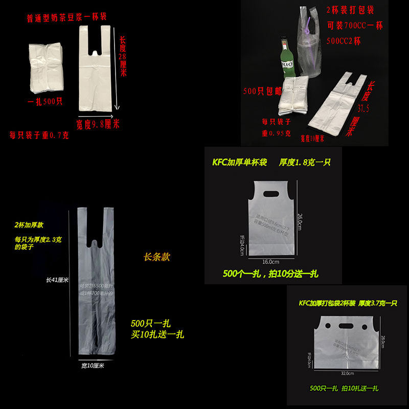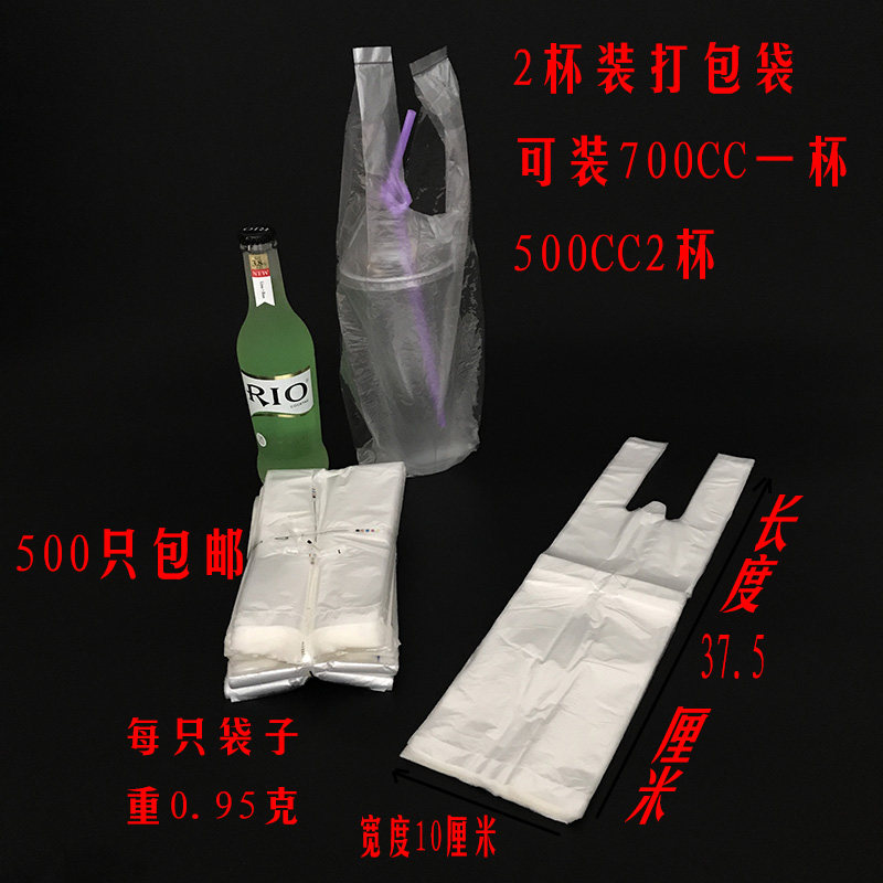 Transparent disposable plastic milk tea packing bag a glass of 2 cups with thickened KFC packing bag with soy milk oil bar