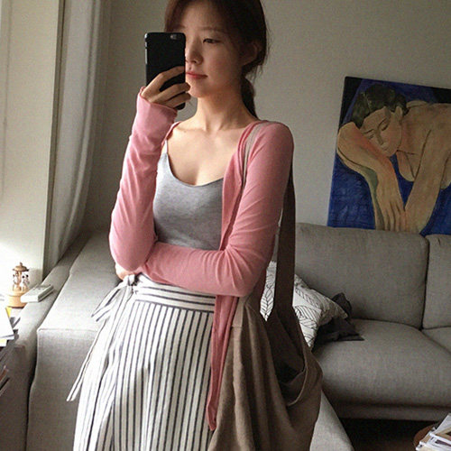 Day Korean women's wear light pink color super comfortable repair skin long sleeve T - shirt TE130