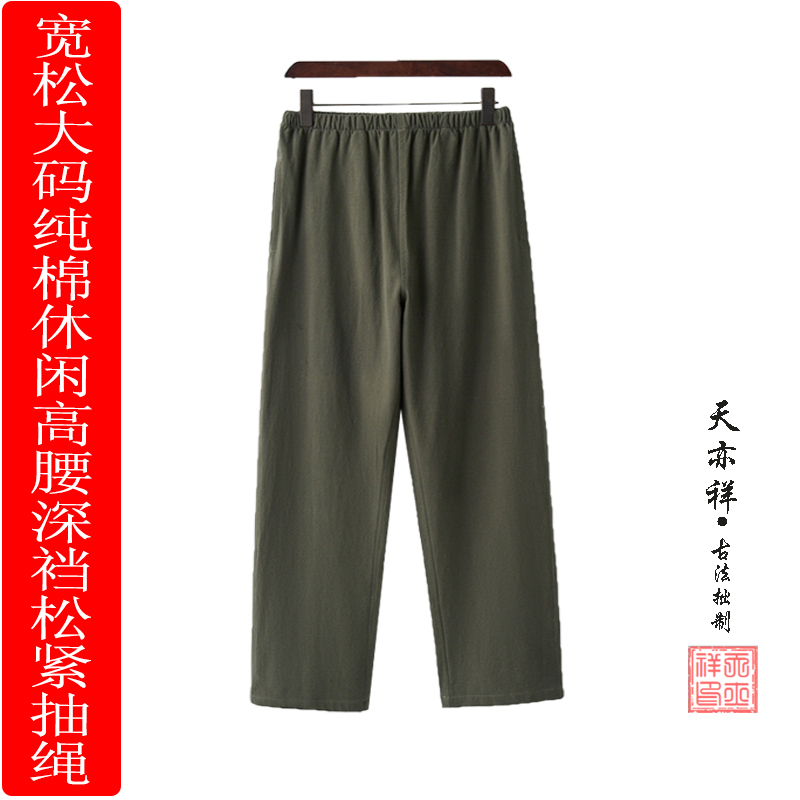 Middle-aged Tang dress men's pants drawstring elastic straight pants Tai Chi morning exercise Lay Shi Hanfu pants loose large size