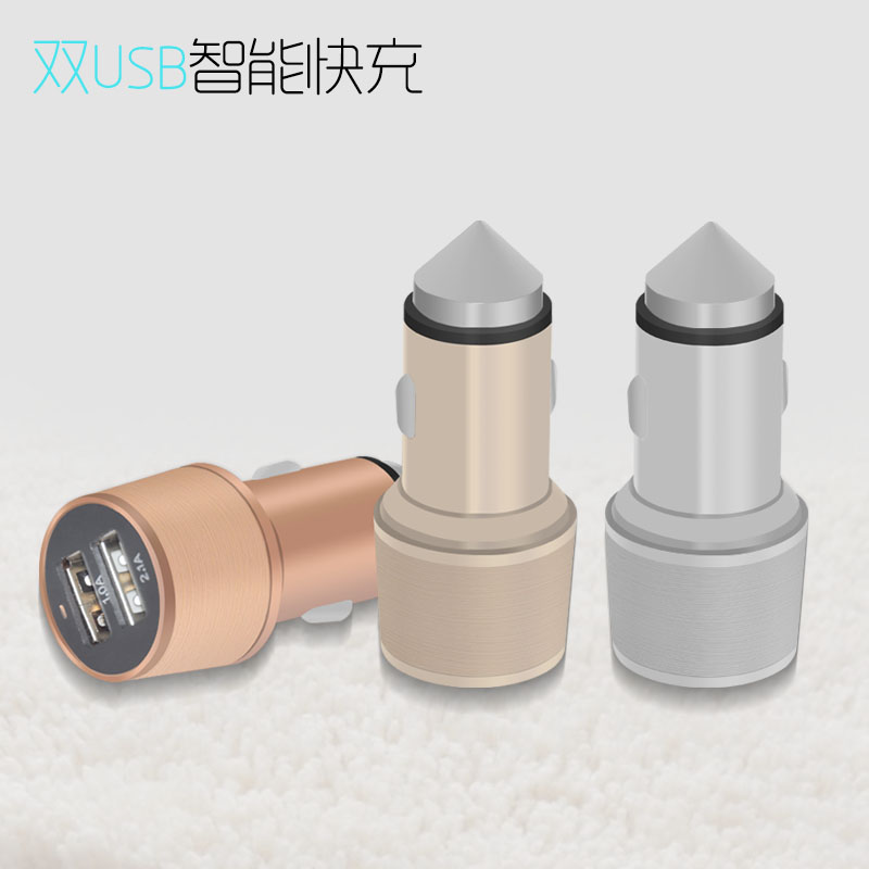 Double Crystal Multi-function Safety Hammer Truck Charger 2.1A Car Charger Dual USB Metal Charging Head Tungsten Steel Hammer Head
