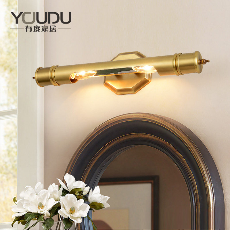 American retro all copper mirror headlight Powder room vanity table Mirror cabinet light Bathroom light Toilet Creative makeup wall lamp