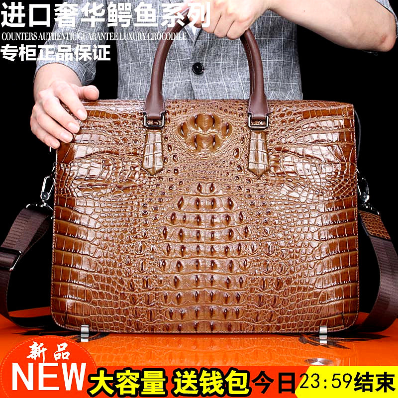 Thailand crocodile leather handbag men's genuine leather shoulder bag business leather bag youth messenger bag computer briefcase