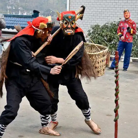 Wen plays the collection of folk national color paintings all hand-carved rural wooden carving dimension mask