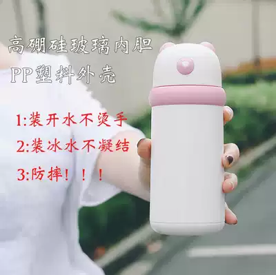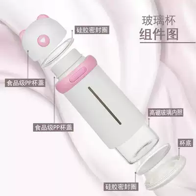 Korean cup Bear Meng plastic glass cup drop-resistant and leak-proof double-layer high borosilicate teacup Men and women convenient water cup