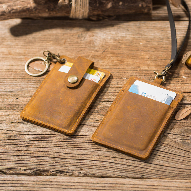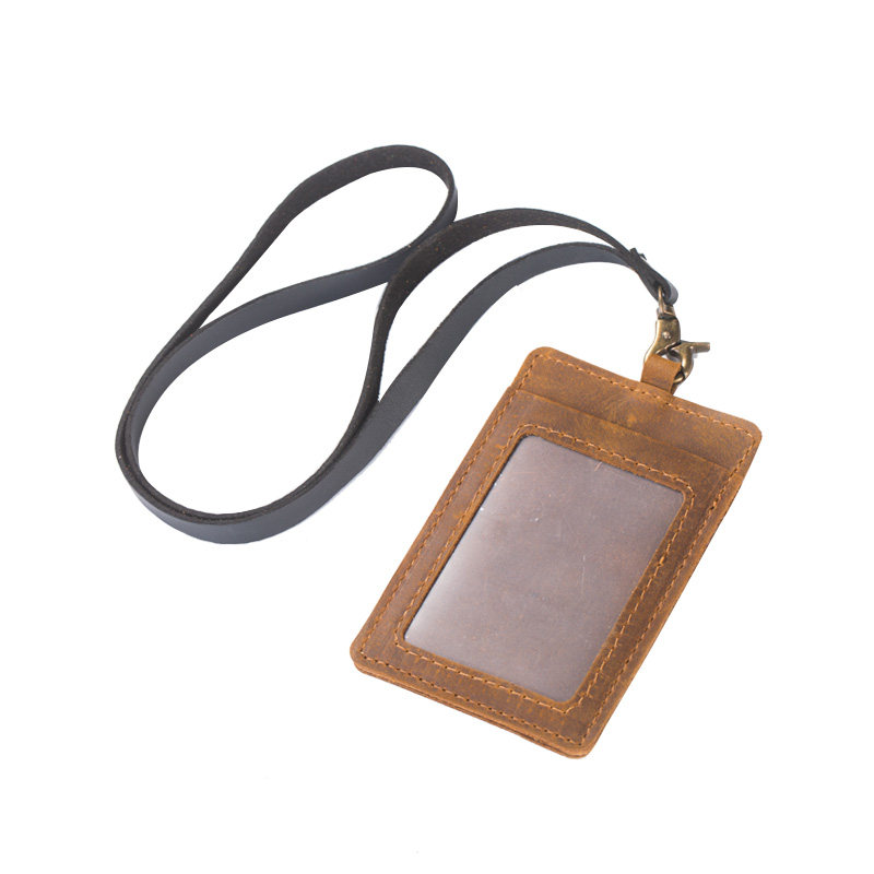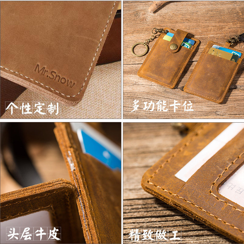 Snow raw cowhide work pass card sleeve transparent leather sleeve high-end badge access control card sleeve leather bus card sleeve can be customized