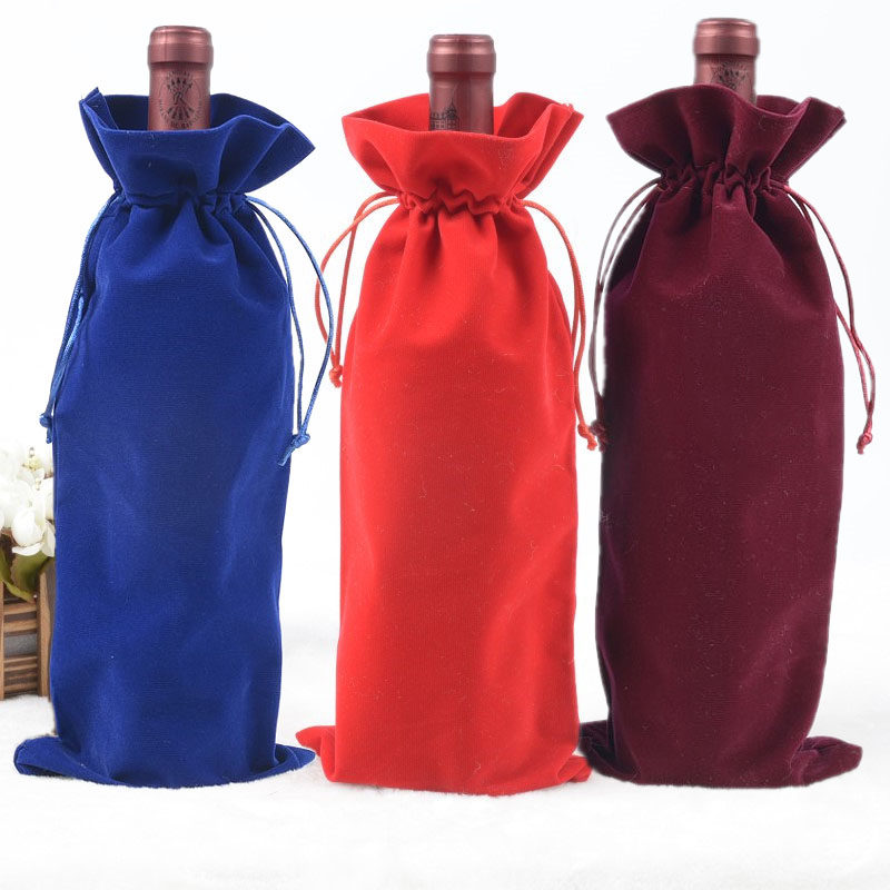 Long-term supply Flannel bundle mouth wine bag Wedding wine packaging bag Red wine blind bag Can be customized printing logo