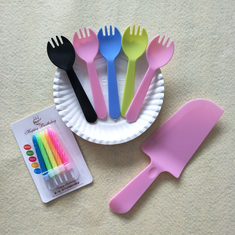 Cake Cutlery Disposable Plastic Cake Knife Fork Tray Combined Disposable Knife Fork Candle Disc 500 sleeves