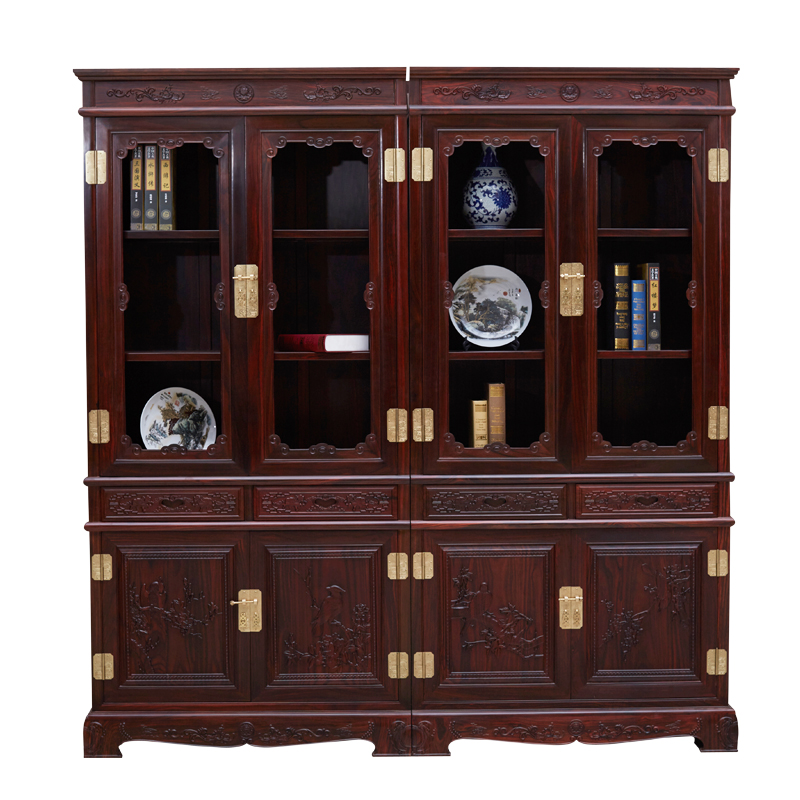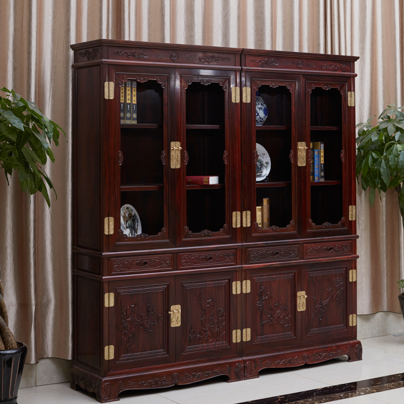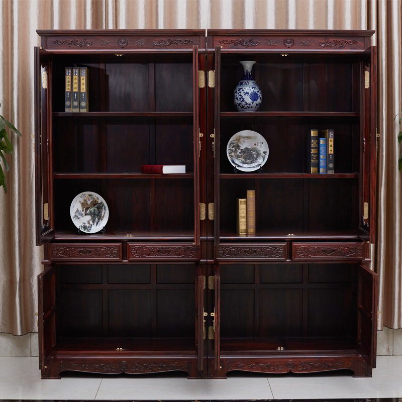 Yuguxuan mahogany furniture bookcase Indonesian black acid branch wood broad-leaved yellow sandalwood bookshelf Dongyang study tenon and mortise furniture