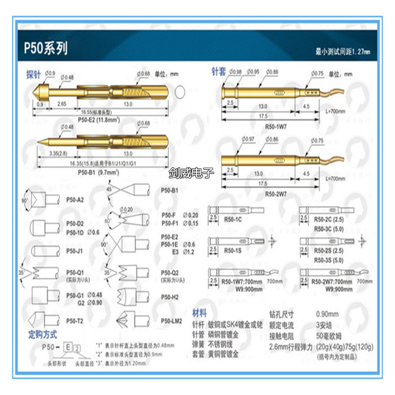 0.9MMT Head Probe Ladder Probe 0-Test Needle PA50-T2 Spring Probe PCB Huarong Test Pin