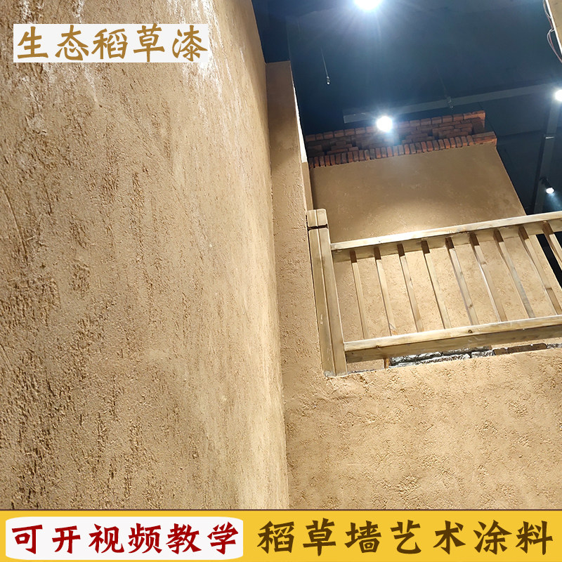 Ecological straw paint Interior and exterior wall straw mud country house texture paint Paper tendons gray and yellow mud wall art paint