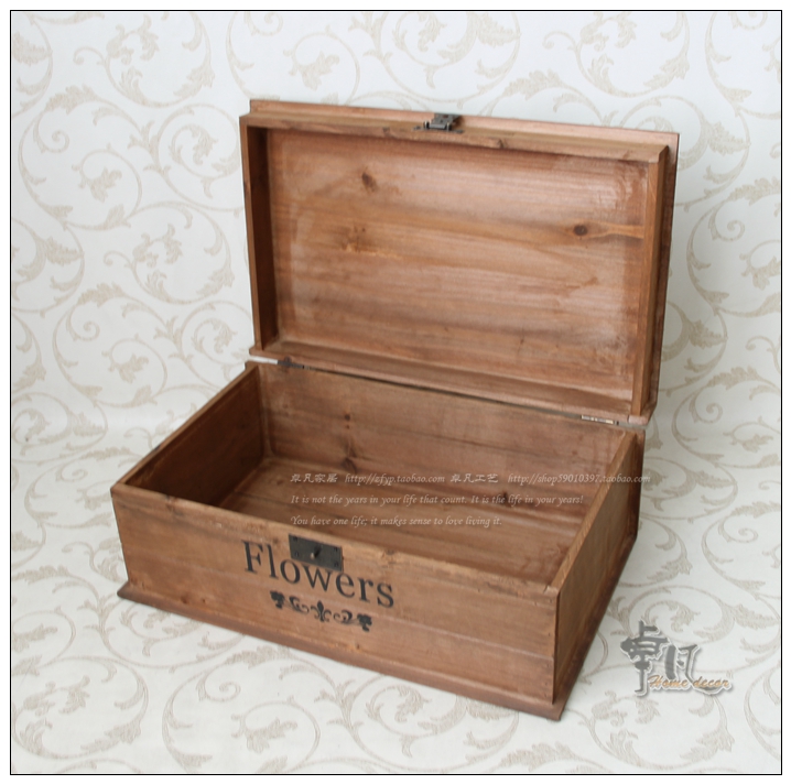 Creative solid wood desktop decoration storage box Vintage old wooden large sundries finishing box Display box