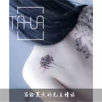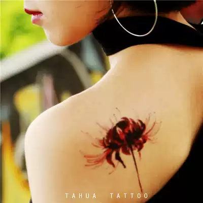 She painted ink and wash the other side of the flower Manzhu Shahua tattoo stickers red simulation chest front back waterproof female lasting