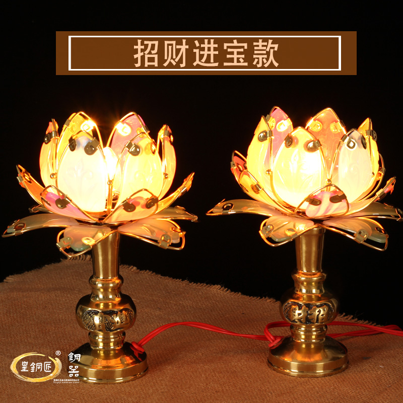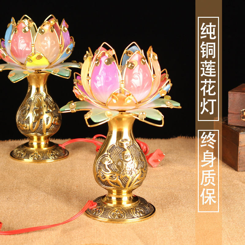 Pure copper LED colorful lotus for Buddha lamp electric candlestick Buddha hall Buddha with Buddha front for lamp long bright lamp lotus lamp