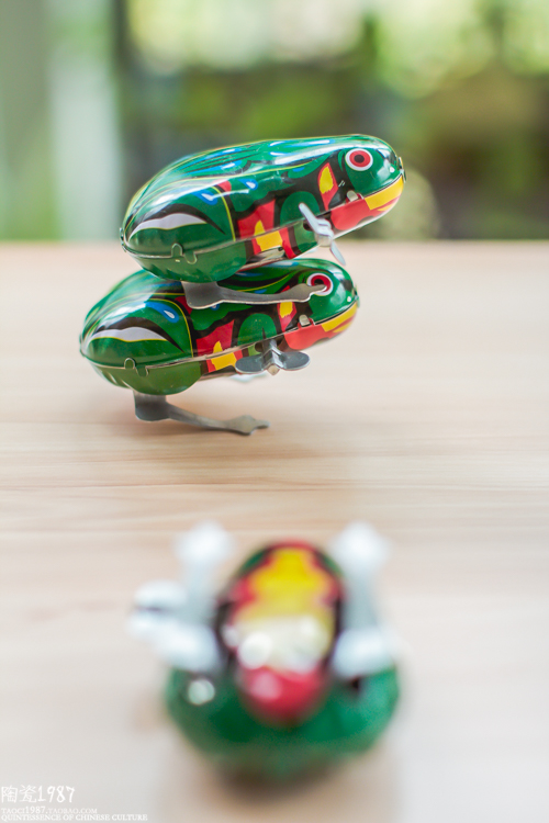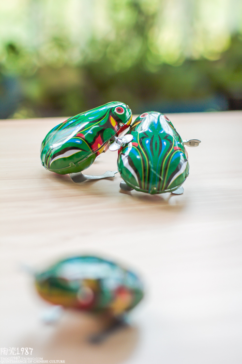 A little tank big rooster, a frog in a pair of frogs.