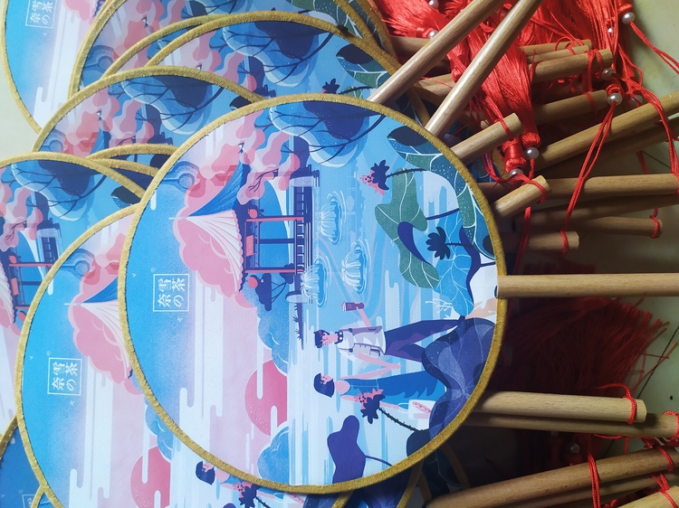 Double dough fan palace fan round eight-petal flower-shaped fan to map custom advertising fan custom graduation design photo photo