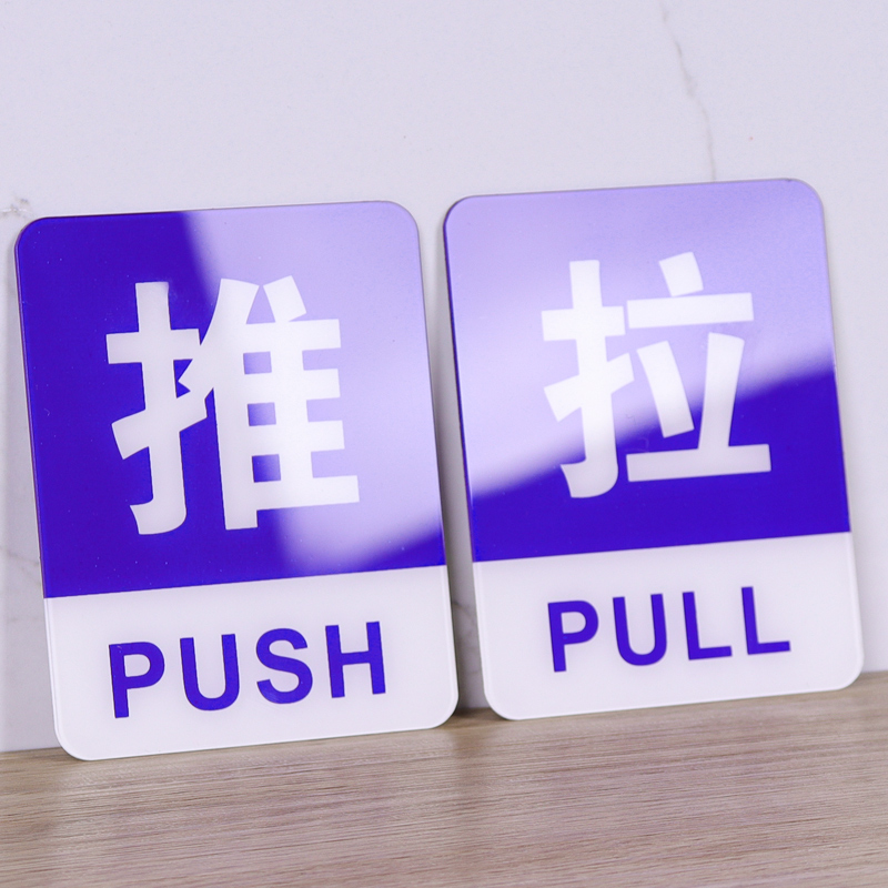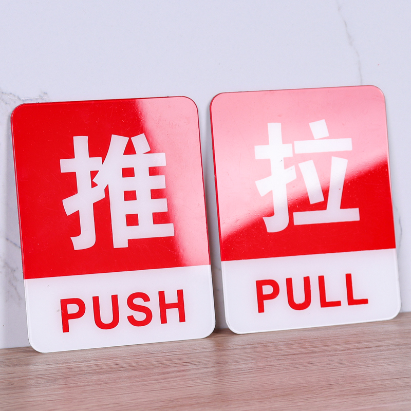 Push-sliding sticker custom acrylic door glass door warmly prompts creative personality hotel hotel hotels left and right slip slip self-adhesive label with advanced punch-free indicator brand customization
