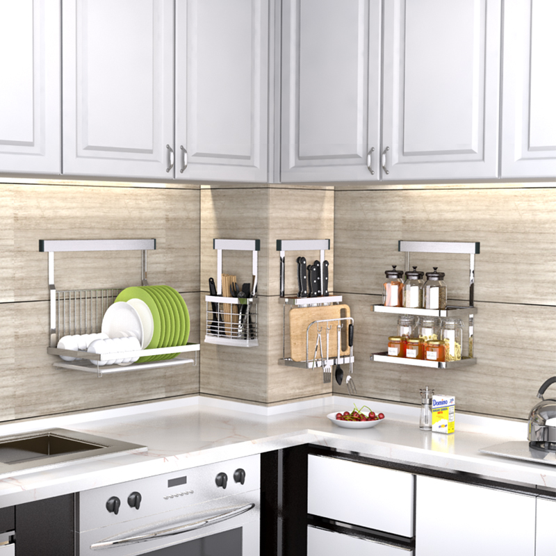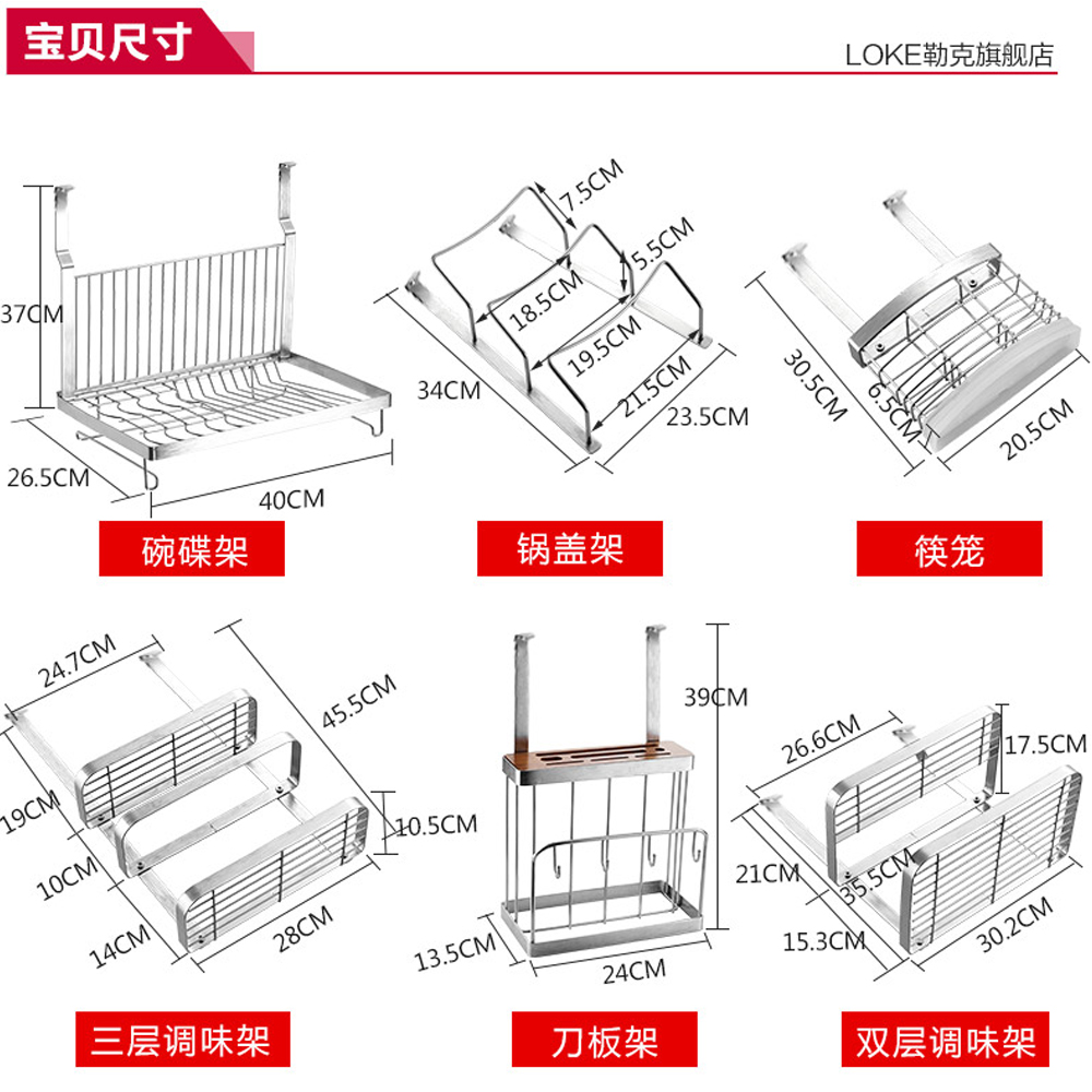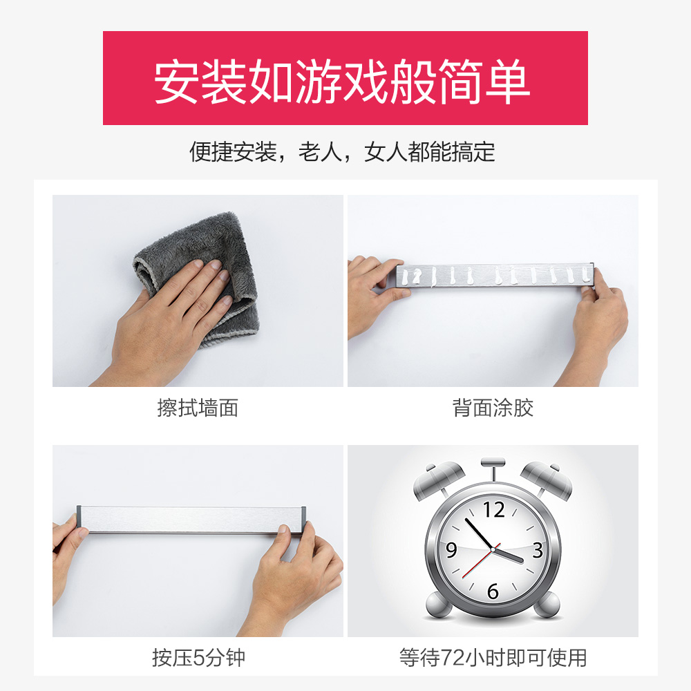 Stainless steel punch-free kitchen rack wall-mounted knife rack supplies hook pendant hanger seasoning seasoning pot cover