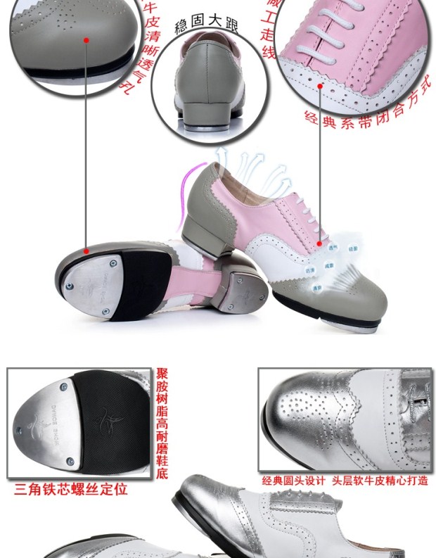Dansxiu first layer cowhide soft-soled tap dance shoes men and women children two-point bottom retro tap dance shoes genuine leather