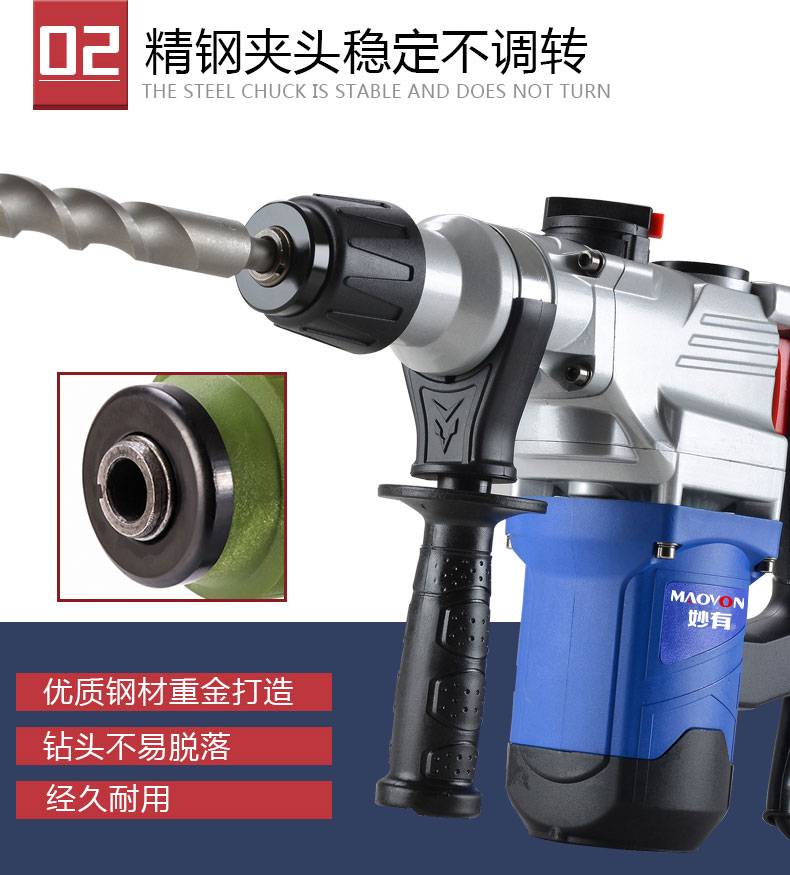 Miao electric hammer drill Electric pick drill Three-use multi-function impact drill Household concrete wall drilling machine tool