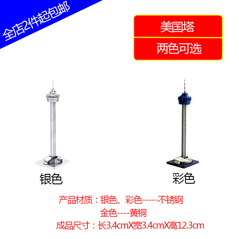 3D glue - free stereo building puzzle All metal diy building assembled stainless steel model of American tower