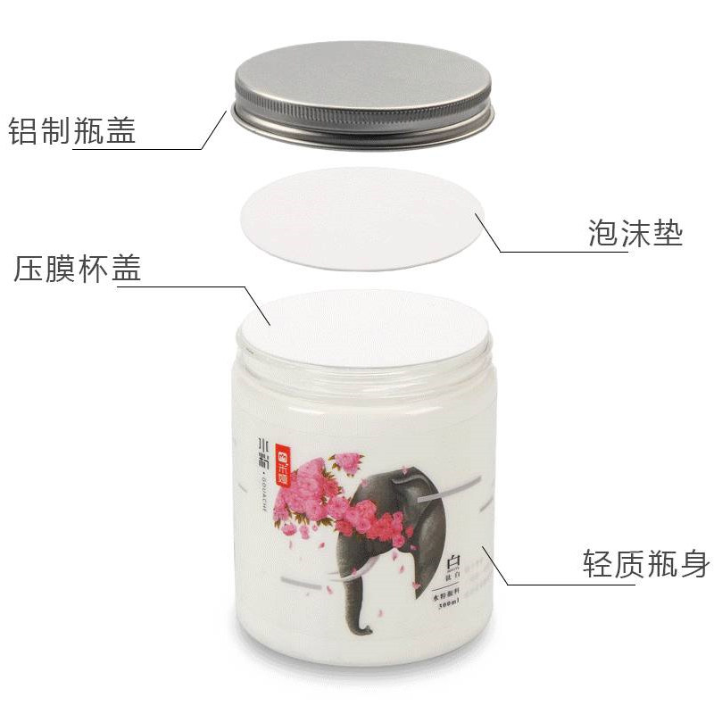 Mia Water Powder Paint 300ml Canned Large Bottle Water Powder Painting Paint Round Pot Mia White Paint 300ml Large Bottled Fine Art Color Large White Lemon Yellow Light Grey Blue 6 colors