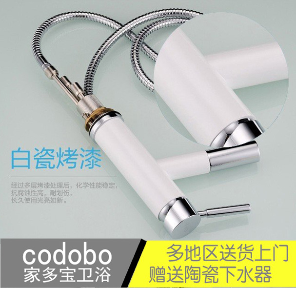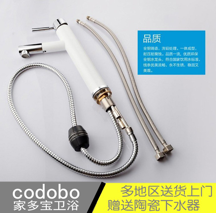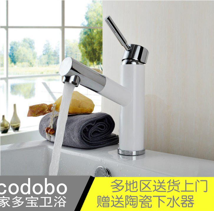 Pull-out tap table basin full copper hot and cold tap face basin table upper tray washbasin pull telescopic tap round