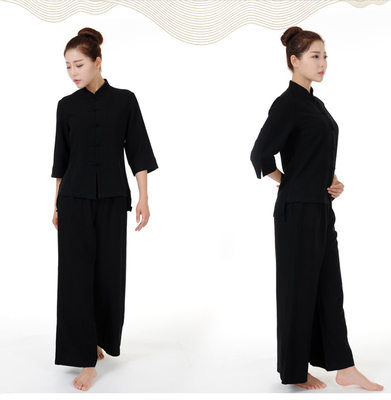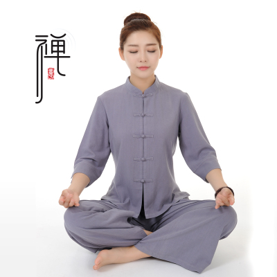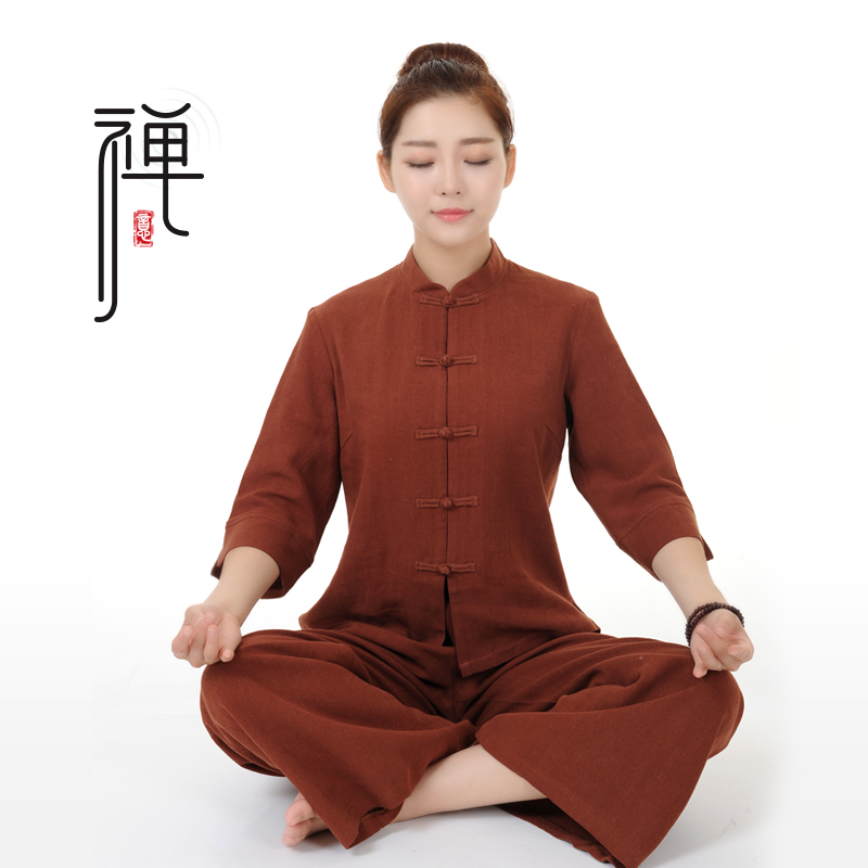 Chinese cardigan Zen meditation suit Female lay suit Cotton and hemp suit Chinese wind buckle Chinese medicine Hall health work clothes