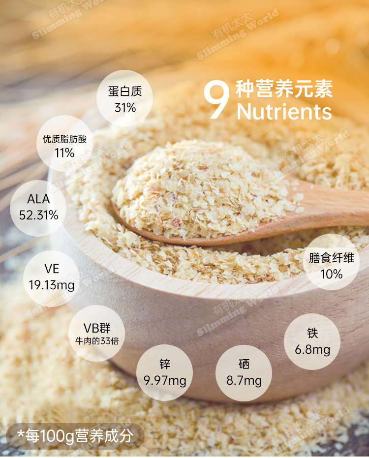 Pasted gold flax seed powder 250g gold flax seed corn 454g white sesame 300g pure brown rice protein powder 227g (vegetarian whey) wheat germ 27g