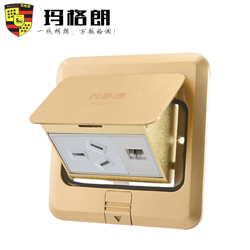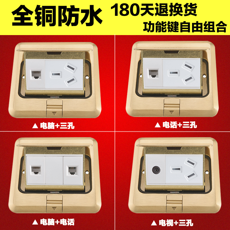 Pop-up ground socket All copper waterproof computer with three holes power supply ground plug dual computer telephone network network cable