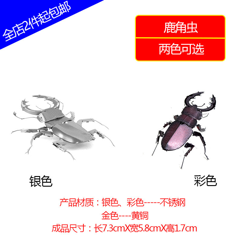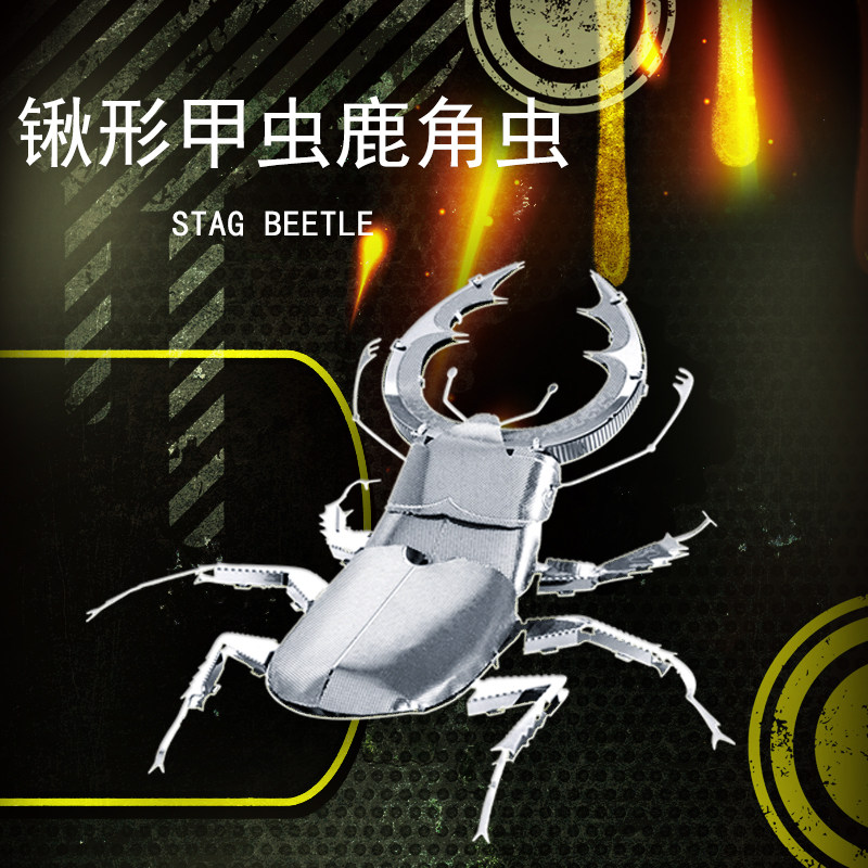 Steel model 3D glue-free three-dimensional insect puzzle metal diy assembled stainless steel handmade model staghorn beetle