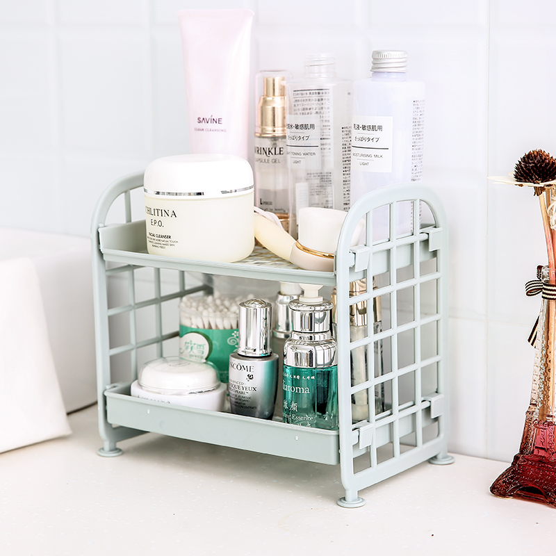 Double-layer plastic storage shelf Kitchen small shelf Desktop storage storage shelf Powder room sink finishing rack