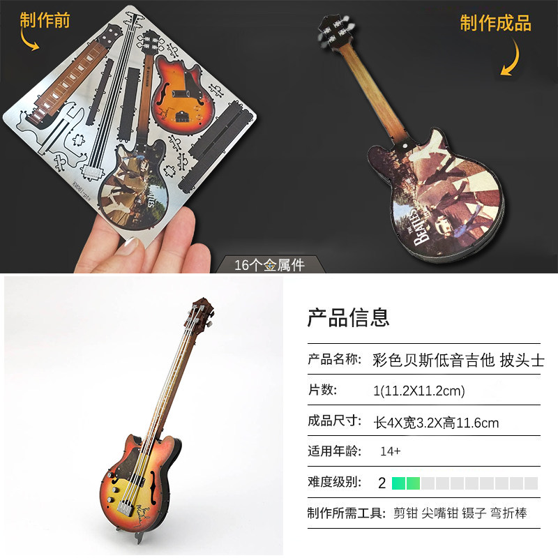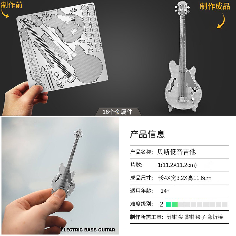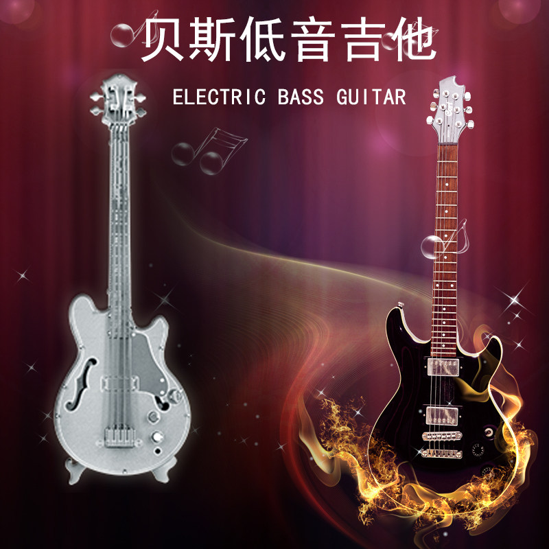 Steel image 3D glue - free stereo instrument puzzle metal diy assembled stainless steel model Bass Bass guitar