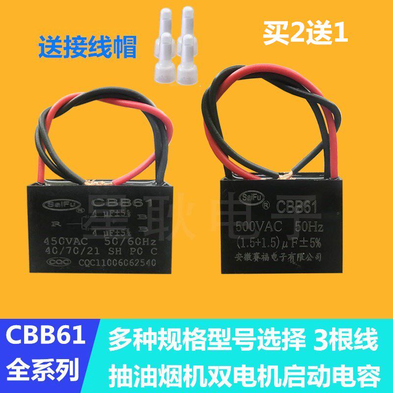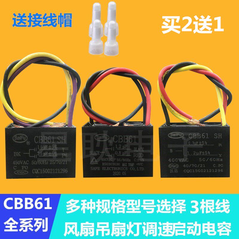 CBB61 fan ceiling fan with light 0.6 0.8 3 0.4 +1.2UF three-wire speed control motor start capacitor