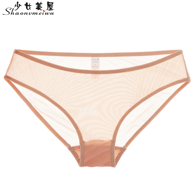 Teenage Girl Beauty House Transparent Mesh Yarn Sexy Briefs Lady No Marks Triangle Pants Breathable Low Waist Safety Pants Skin Color Thin