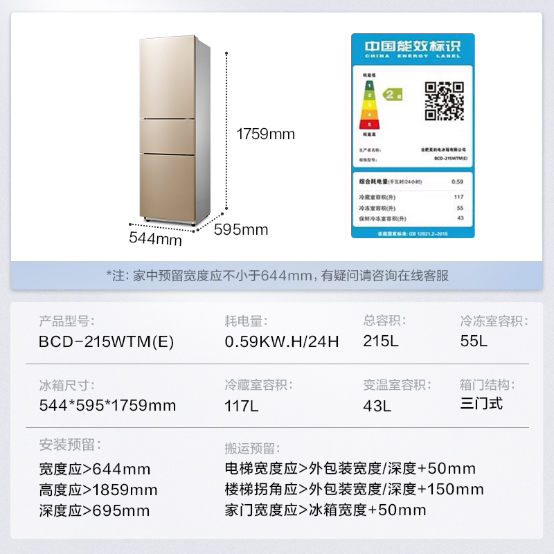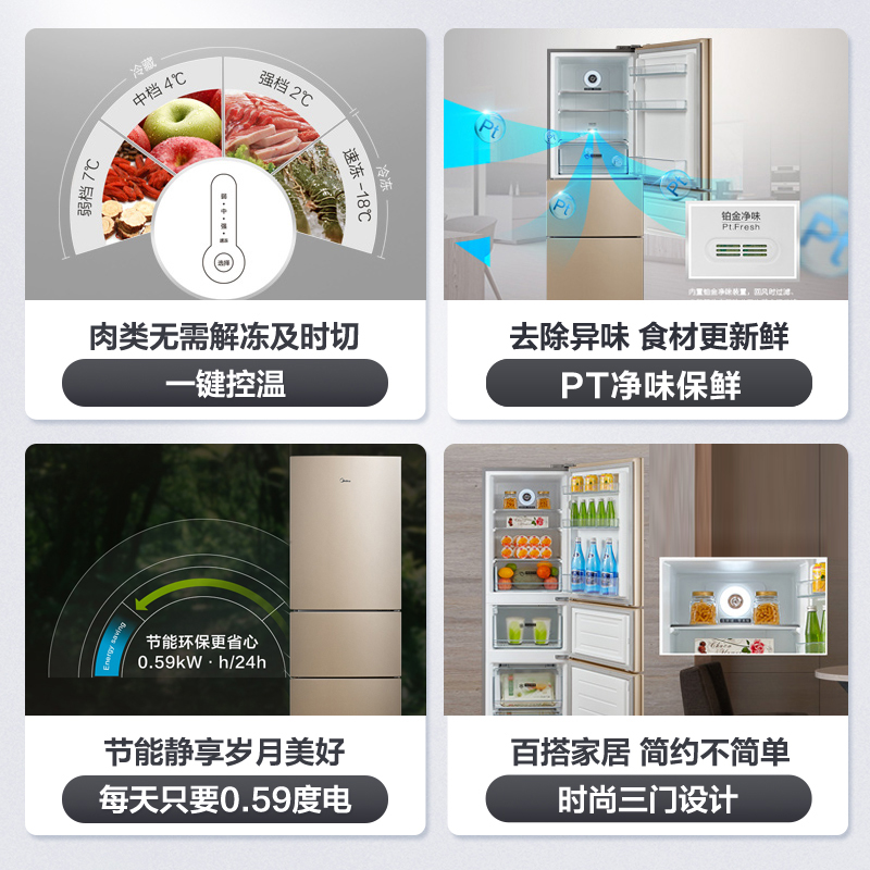 Midea Midea's BCD-215WTM(E) small refrigerator household small three doors frost-free energy saving official small refrigerator