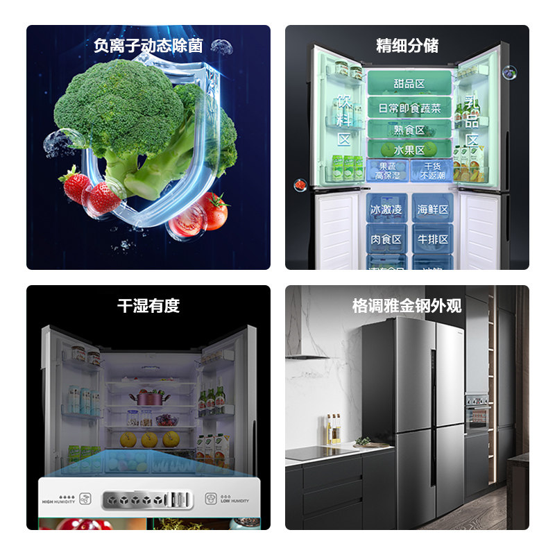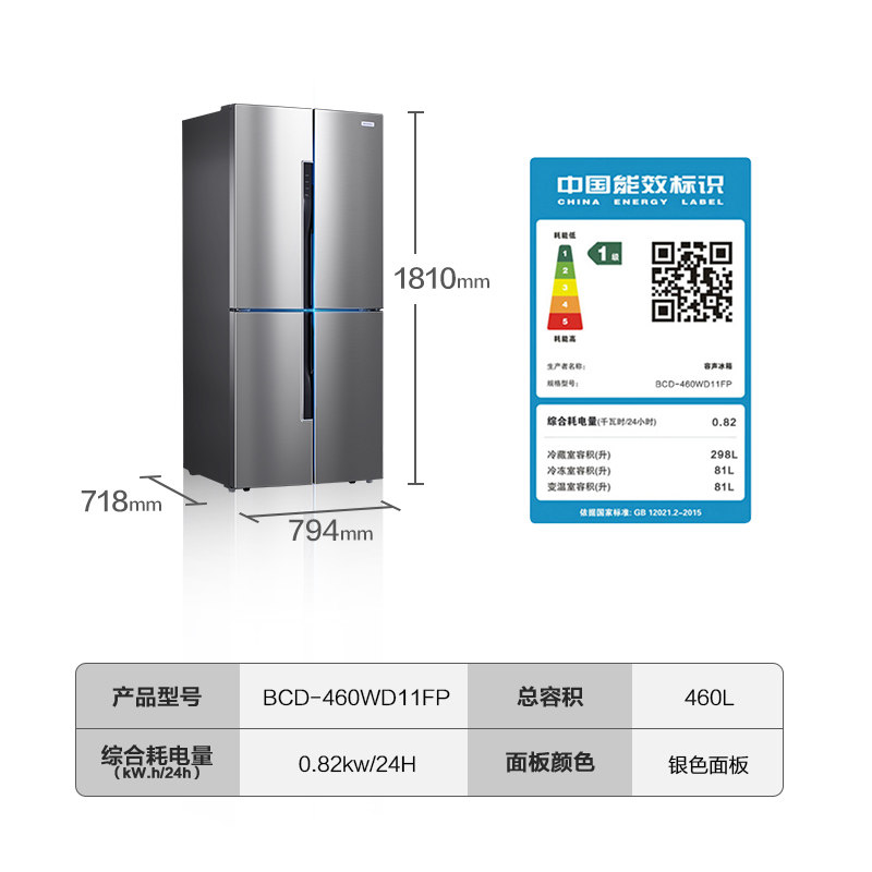 Rongsheng BCD-460WD11FP cross four-door open double-switch household refrigerator first-class frequency conversion no frost
