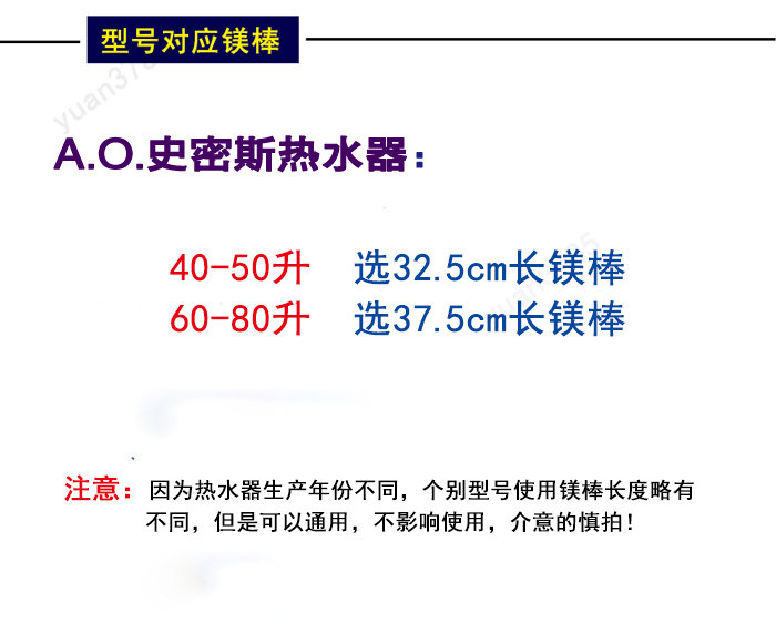 Length 32 5cm magnesium rod(40-50 liters)Length 37 5cm magnesium rod (60-80 liters)32 5cm Magnesium rod disassembly tool (40-50 liters) Length 37