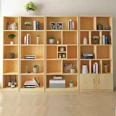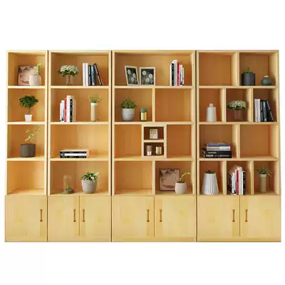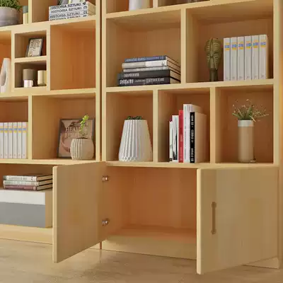 Solid wood bookcase bookcase free combination Simple modern children's bookcase with door lattice cabinet Pine cabinet storage cabinet