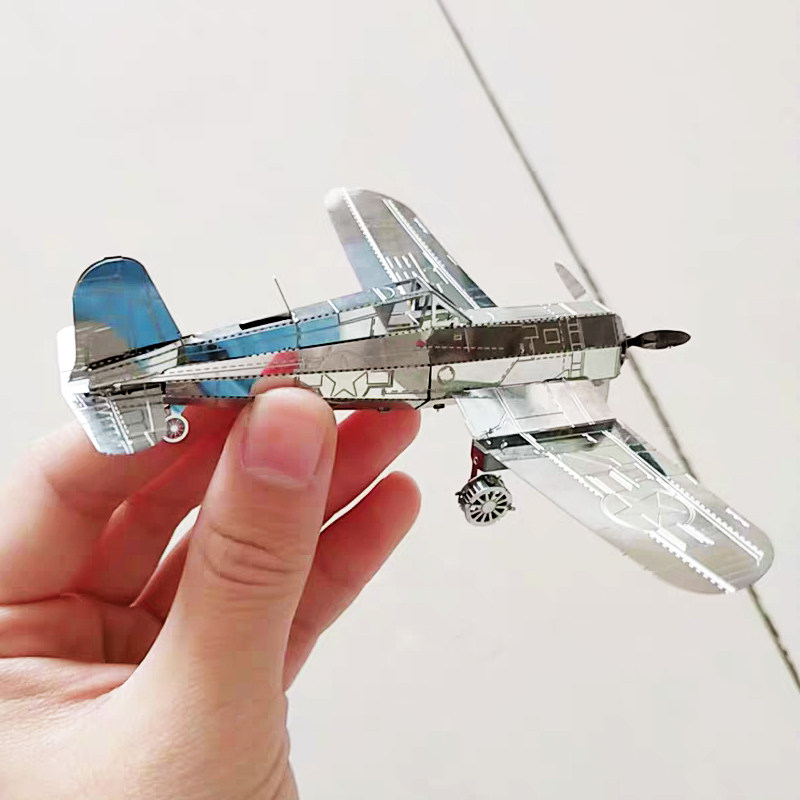 Steel moles like 3D gel-free solid metal assembled stainless steel puzzle model Bombing aircraft Pirate Fighter