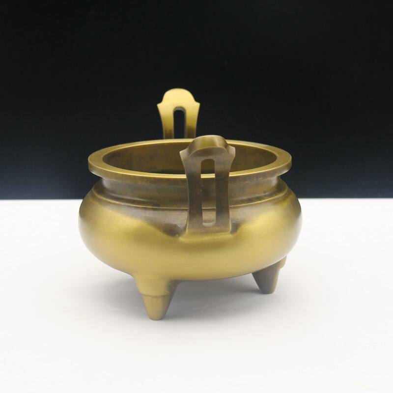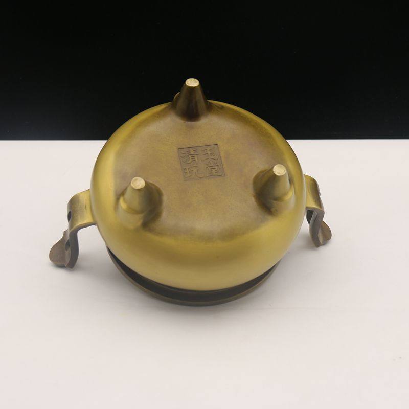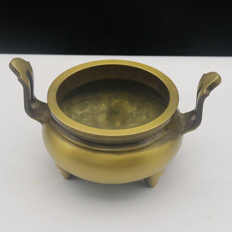Large copper incense burner bamboo leaf ear three-legged home Buddha incense burner incense burner incense burner incense burner to send incense