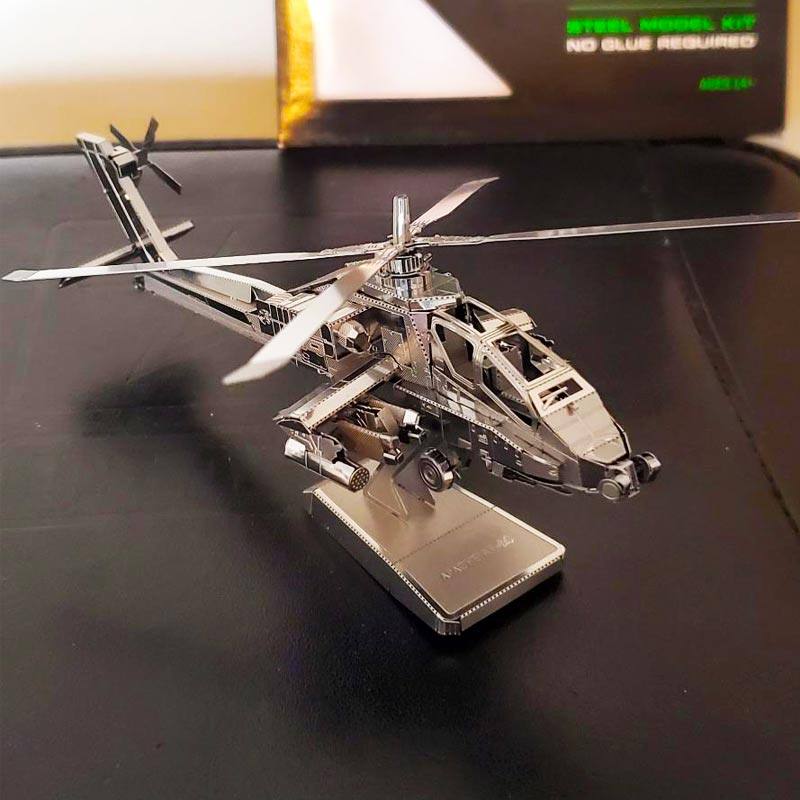 3D glue-free three-dimensional metal assembly stainless steel puzzle model fighter bomber AH64 helicopter Apache