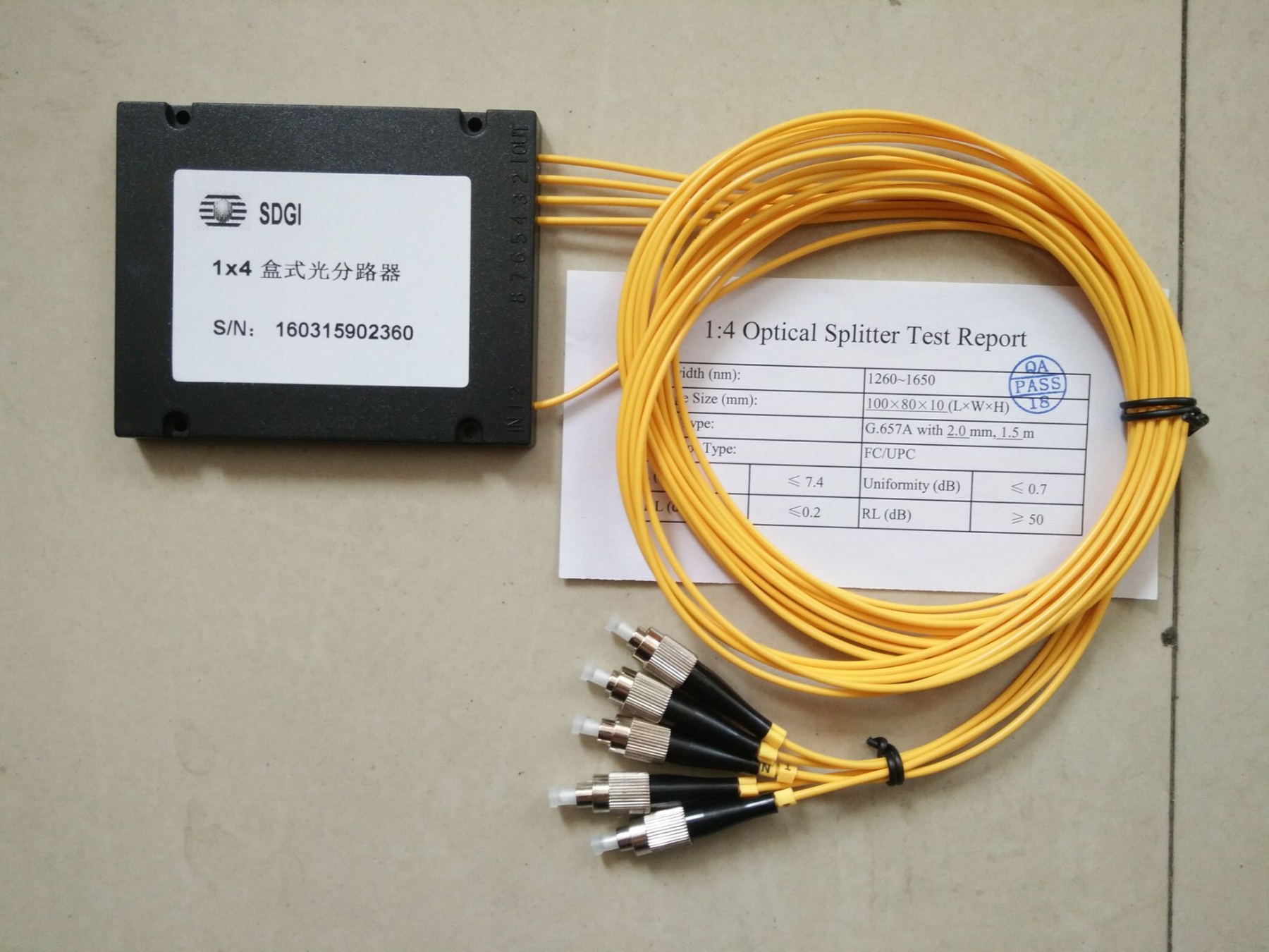 Carrier grade 1: 4 round head pigtail splitter New 1: 4 FC cassette optical splitter is also recycled