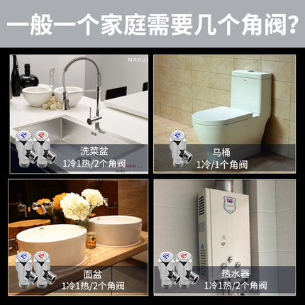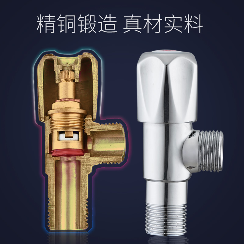 Submarine angle valve refined copper thickened hot and cold water triangle valve package eight-character water stop valve switch F006 007